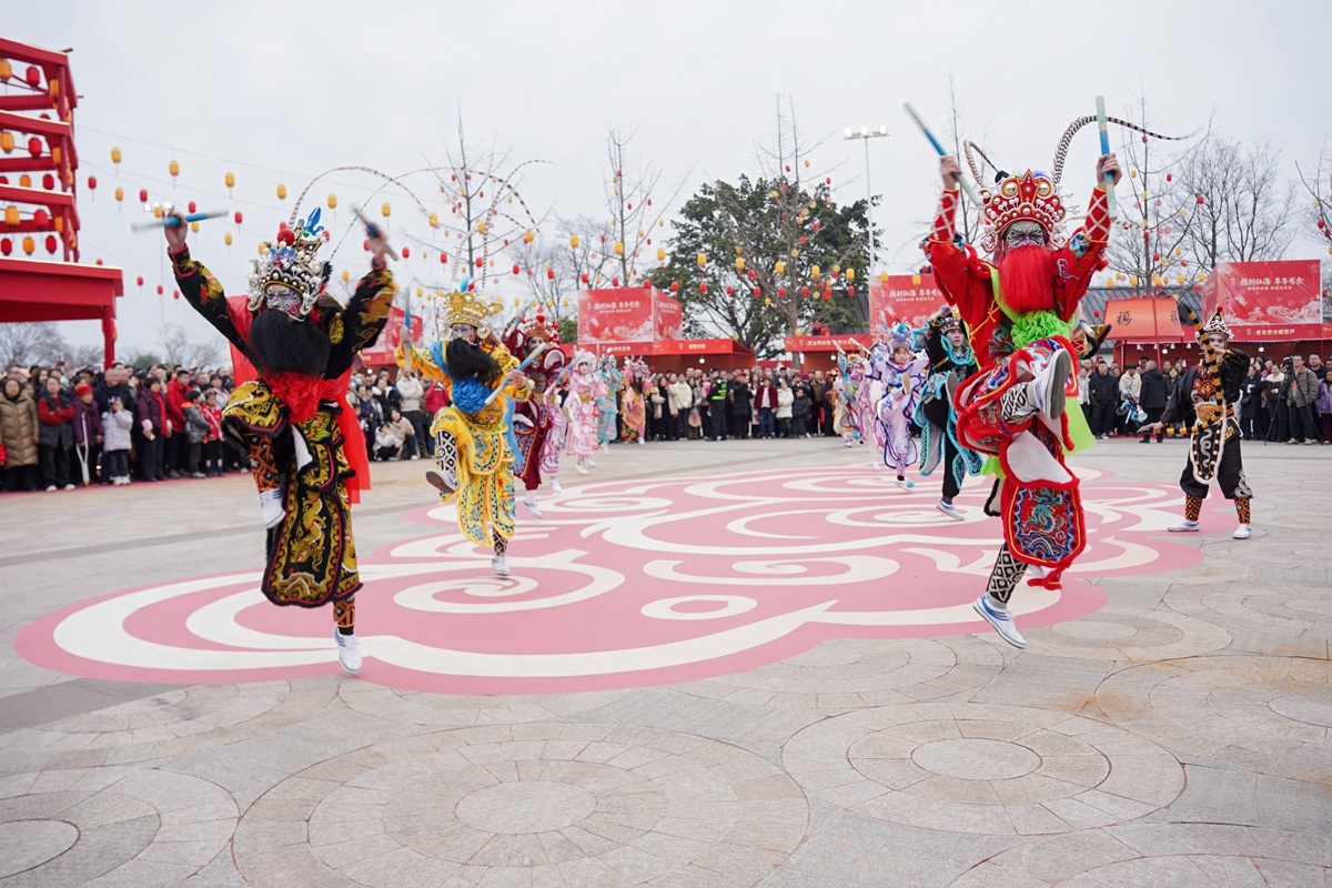 在绵阳市仙海区,“青睐绵阳”——“福到仙海 年年有余”潮玩科文旅非遗过大年活动于2月15日拉开序幕。2月17日上午,“中华战舞”潮汕英歌舞率先擂响新春战鼓,南狮高桩采青、新疆达瓦孜高空走大绳等非遗代表性项目轮番上演;夜晚时分,打铁花、火舞秀与电音三太子配合空中飞马演出和科技光影装置,营造出火树银花、流光溢彩的梦幻之夜。现场还设置VR互动体验区,让游客在感受非遗魅力的同时体验科技的神奇;三台县潼川古城,正月初一推出开城仪式、舞龙舞狮巡游、全城汉服巡游等系列文旅活动。护城河广场的祈福仪式温馨祥和,梓州渡的涪江号子非遗演绎雄浑豪迈,《潼川风云录》红色剧本杀让游客在沉浸式互动中重温红色记忆。
