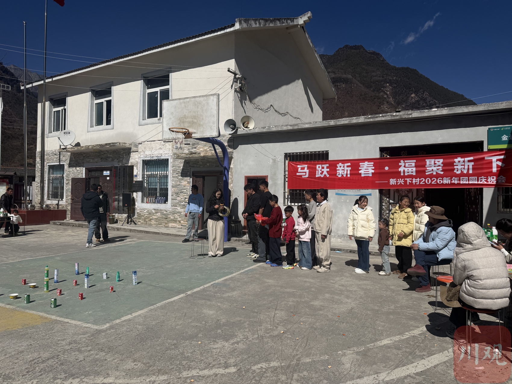 村里的年轻人摆开方桌,端上自家准备的年货;老人们围坐在一起,喝着热茶,晒着太阳;孩子们踮起脚尖,等着游戏环节开始的哨声。在家村民几乎全到了,笑声、吆喝声、掌声混成一片,把这个高山村落的新春渲染得热气腾腾。