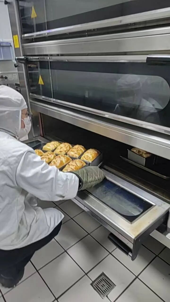 “以前物美也有现烤面包,但种类和花样现在没这么多,也没这些好吃。快过年了,买回家给孩子们备着。”说着,市民邵大姐挑了一个核桃满满乳酪面包和几个老婆饼。前厅员工麻利地为她进行分切和包装,操作间里,张冰雪和一名已经开始着手准备下一批面包,保证全天的面包供应不断货。