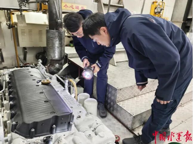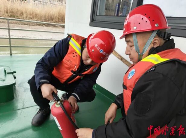 暮色尚未完全笼罩江面时,工作人员已投入到紧张的夜航前准备中,各项工作有条不紊、环环相扣。机舱内,两名工作人员手持手电筒,逐一检查机舱设备的运行状态,从动力系统到应急装置,不放过任何一个细节,“机舱是船的‘心脏’,冬季气温低,设备容易出现故障,必须反复检查,确保万无一失”。消防器材检查现场,工作人员仔细核对灭火器的压力值、有效期,逐一检查消防栓的出水情况,筑牢消防安全防线;甲板上,大家合力对排污管进行保温处理,用保温棉仔细缠绕管道,防范低温结冰影响设备运行……