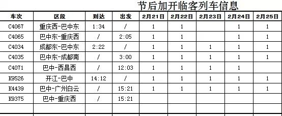 节后加开临客信息。中国铁路成都局集团有限公司广元车务段供图