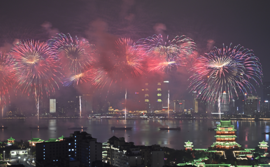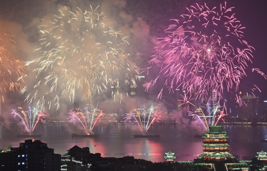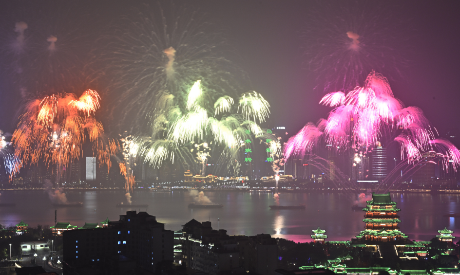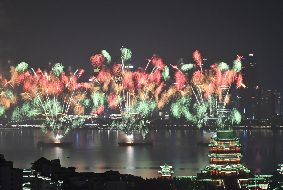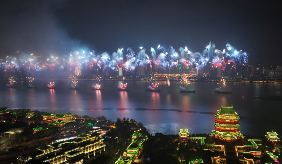 晚会在去年经典“生命之树”特效基础上,全新增添“金玉满堂”“五彩飞瀑”“隆兴溢彩”“彩虹花海”等多款创意特效烟花,62发大规格高空礼花延长空中滞空时间,高空、中空、低空层层递进,光影交织、色彩斑斓,呈现出层次丰富、气势恢宏的视觉体验,将新春的喜庆与南昌的城市活力展现得淋漓尽致,让全城市民在火树银花中感受浓浓年味,共庆马年新春。