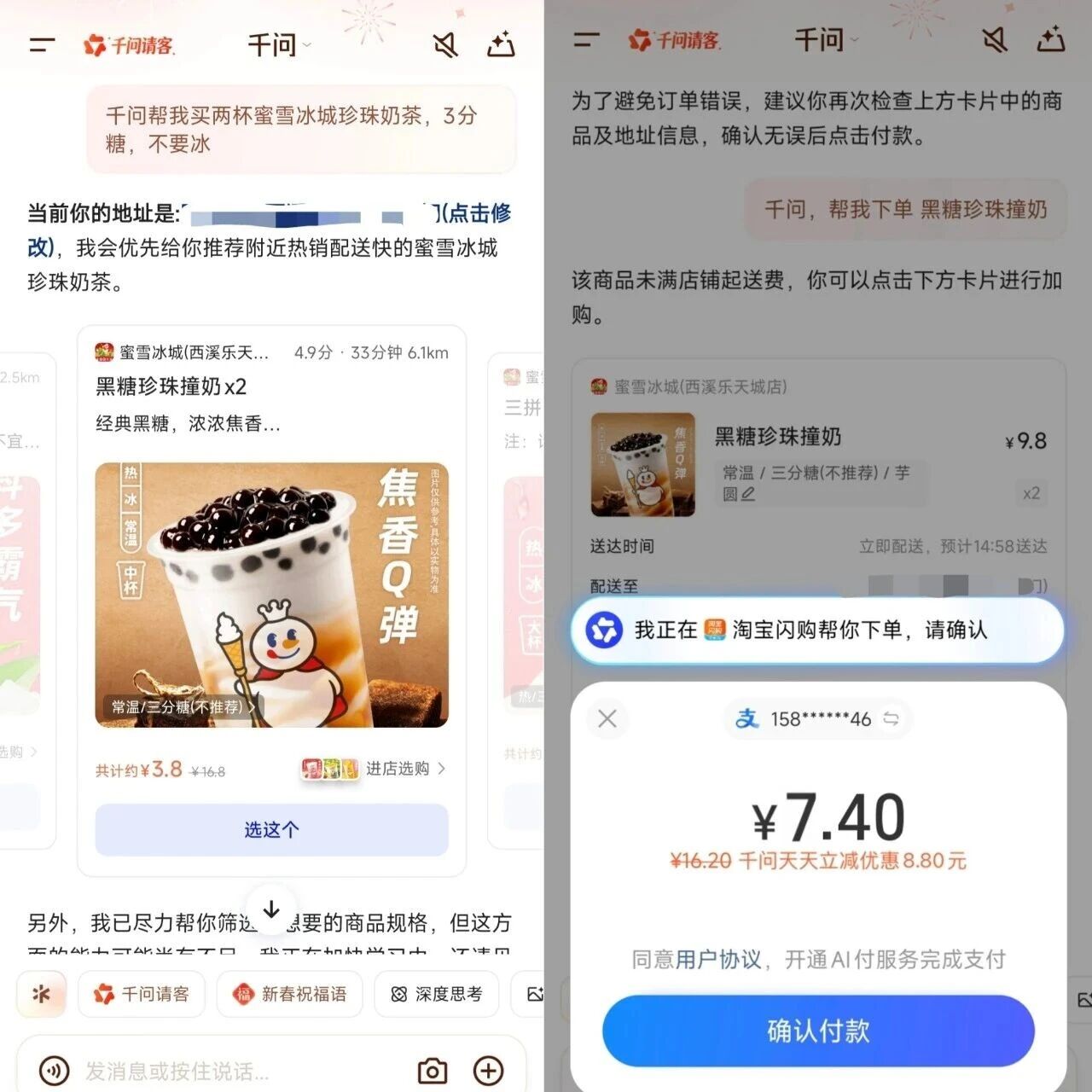 据了解,此次优惠无需领卡、无需凑单,用户只需对AI说出需求即可自动参与,每人每天均可享受。