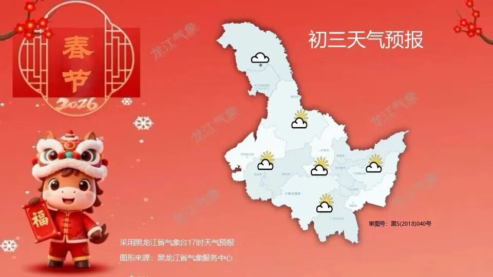 23日(初七):大兴安岭、黑河、伊春、齐齐哈尔北部、绥化北部、鹤岗、佳木斯东部、双鸭山东部阴有小雪,其它地区晴有时多云。