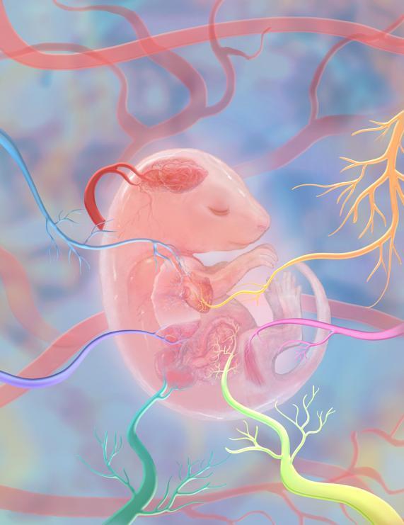 研究人员绘制的核心发现示意图,即表示在胚胎期,各器官的血管已呈现差异化。(受访者供图)