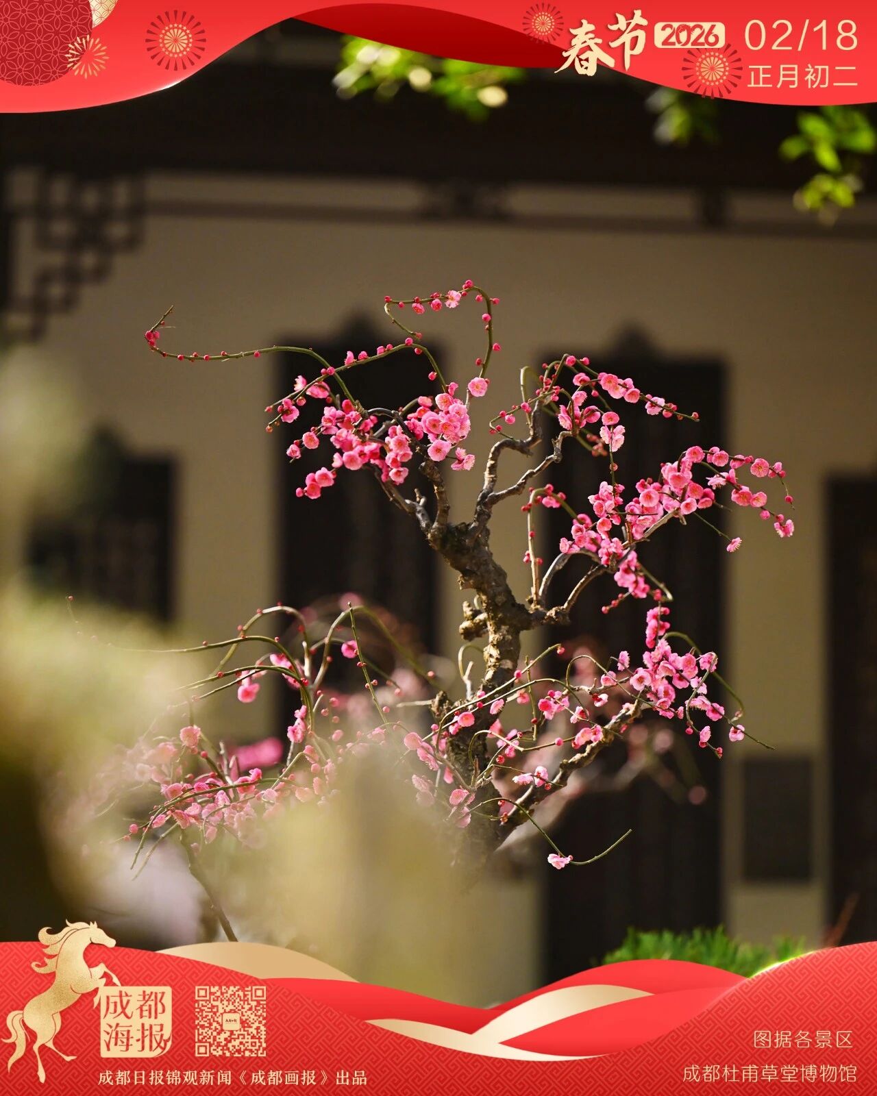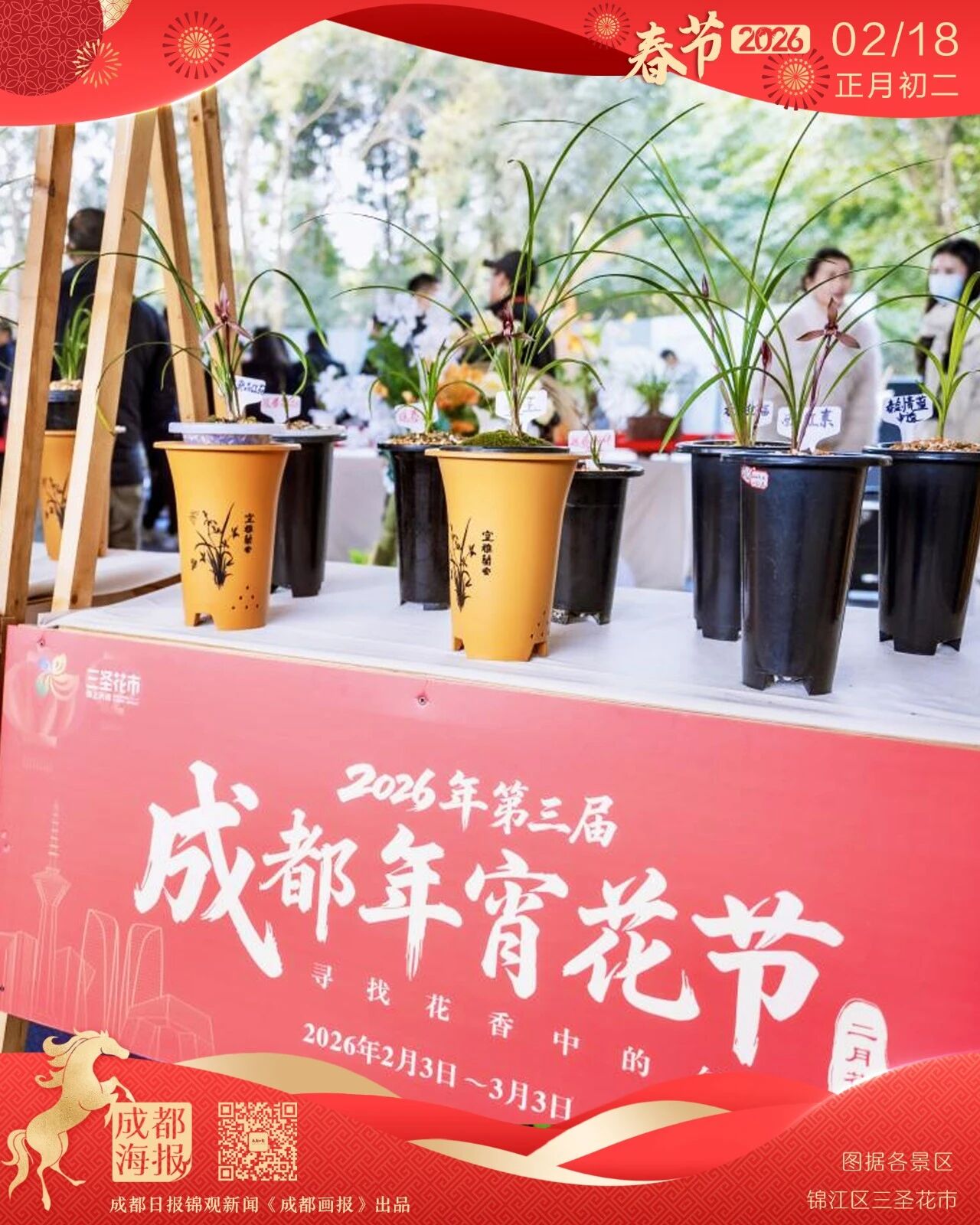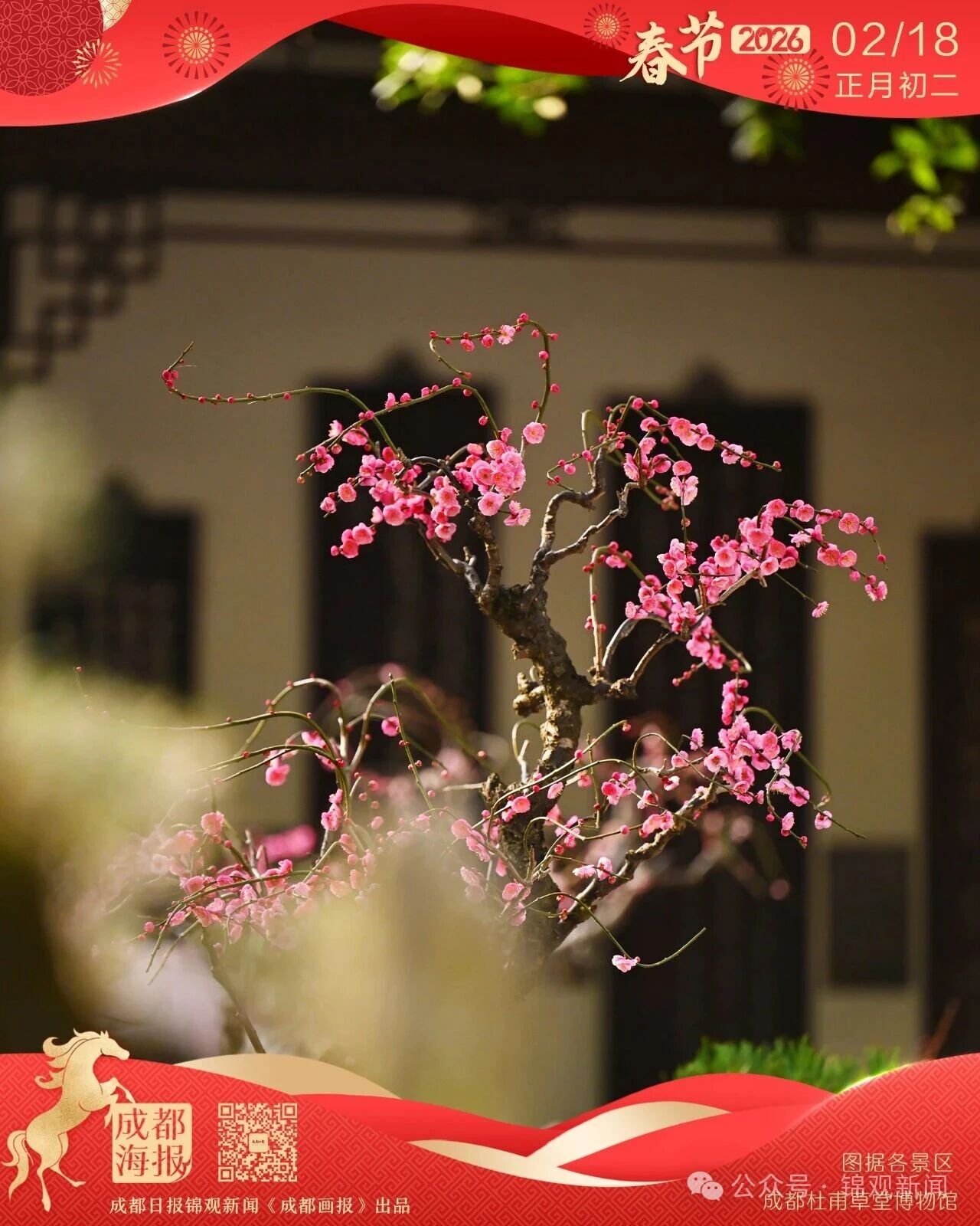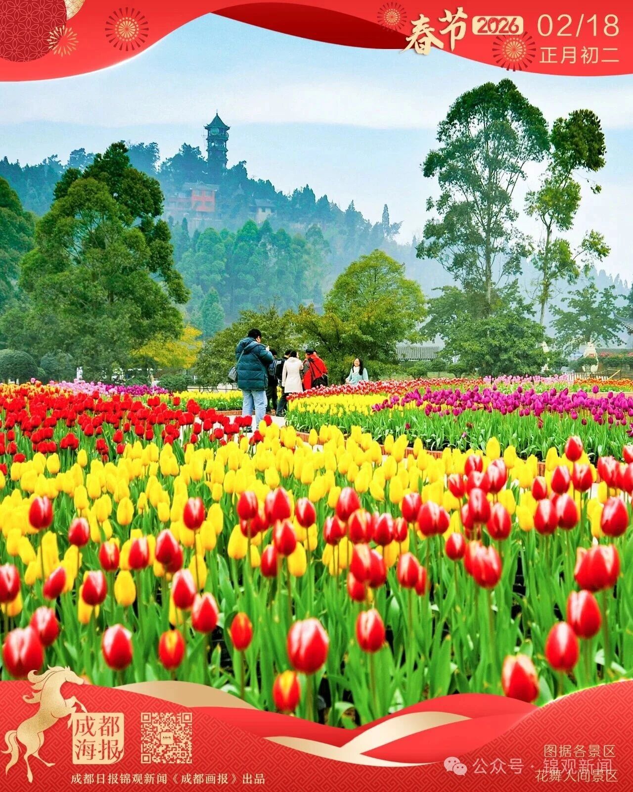 春节期间,成都各类游园赏花活动接连不断。趁着春光一起去赏花吧!第十三届成都花舞人间郁金香节:展出各种品种的郁金香、镂空杜鹃花柱、精品杜鹃、樱花、三角梅、虞美人等超多花卉,在春节期间还将表演面塑、纸艺、剪纸、绳编、变脸、吐火等非遗项目。2026年成都第三届年宵花节:作为本届年宵花节主会场,三圣花市精心设置了年宵花展、精品兰花主题展、地道川味年货节及非遗互动等多个特色板块,现场逛买体验丰富多元,市民不仅可在花香中感受传统年味,还可选购心仪的花卉与节庆植物,领取专属伴手礼,享受一站式“赏购玩”体验。成都杜甫草堂博物馆:第五十四届红梅艺术展将展出数百盆梅花桩头及千余株梅树,大雅堂、盆景园、寻香道将呈现古朴雅致、生机勃勃景致。记者 王嘉 图据各景区制图 曹劲松 严瑾编辑 王斌审核 陈晨