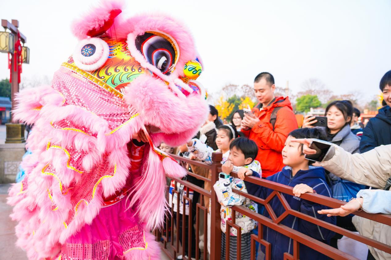 走进方特,浓浓的年味扑面而来。“清韵小镇”已变身为热闹的烟火市集,红灯笼高悬枝头,造型各异的大型主题花灯点缀其间,营造出喜庆祥和的节日氛围。游客们穿梭于市集之间,品尝地道小吃、选购民俗手作,在烟火气中感受新春的暖意。人造雪花缓缓飘落,为这片热闹增添了几分浪漫,孩子们在新春花海前嬉戏,全家人在巨型花灯下合影留念,定格下团圆的美好瞬间。