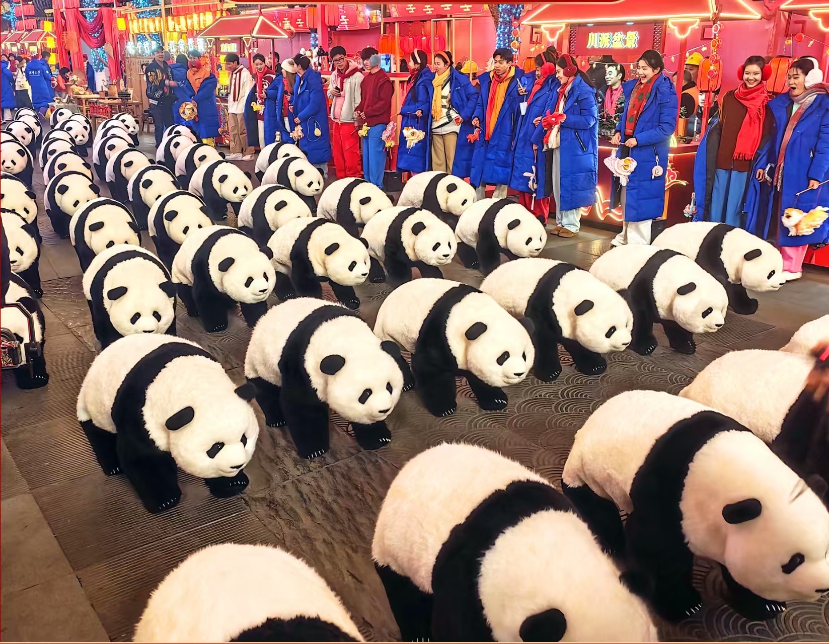 2026年春晚宜宾分会场现场,80只机器大熊猫走上街头表演。受访者供图