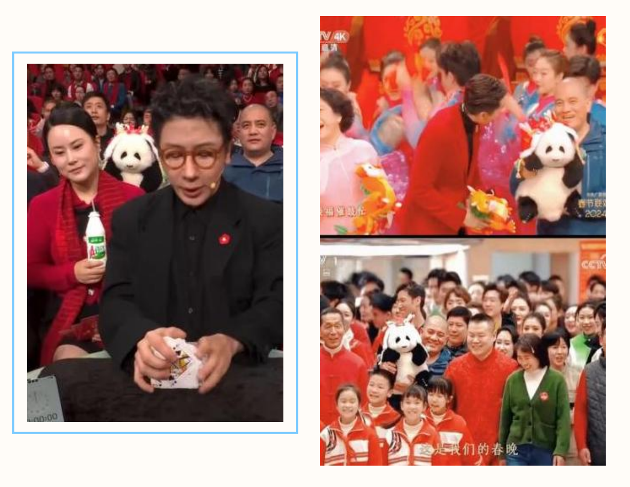 2024年春晚现场,大熊猫在观众席亮相。受访者供图