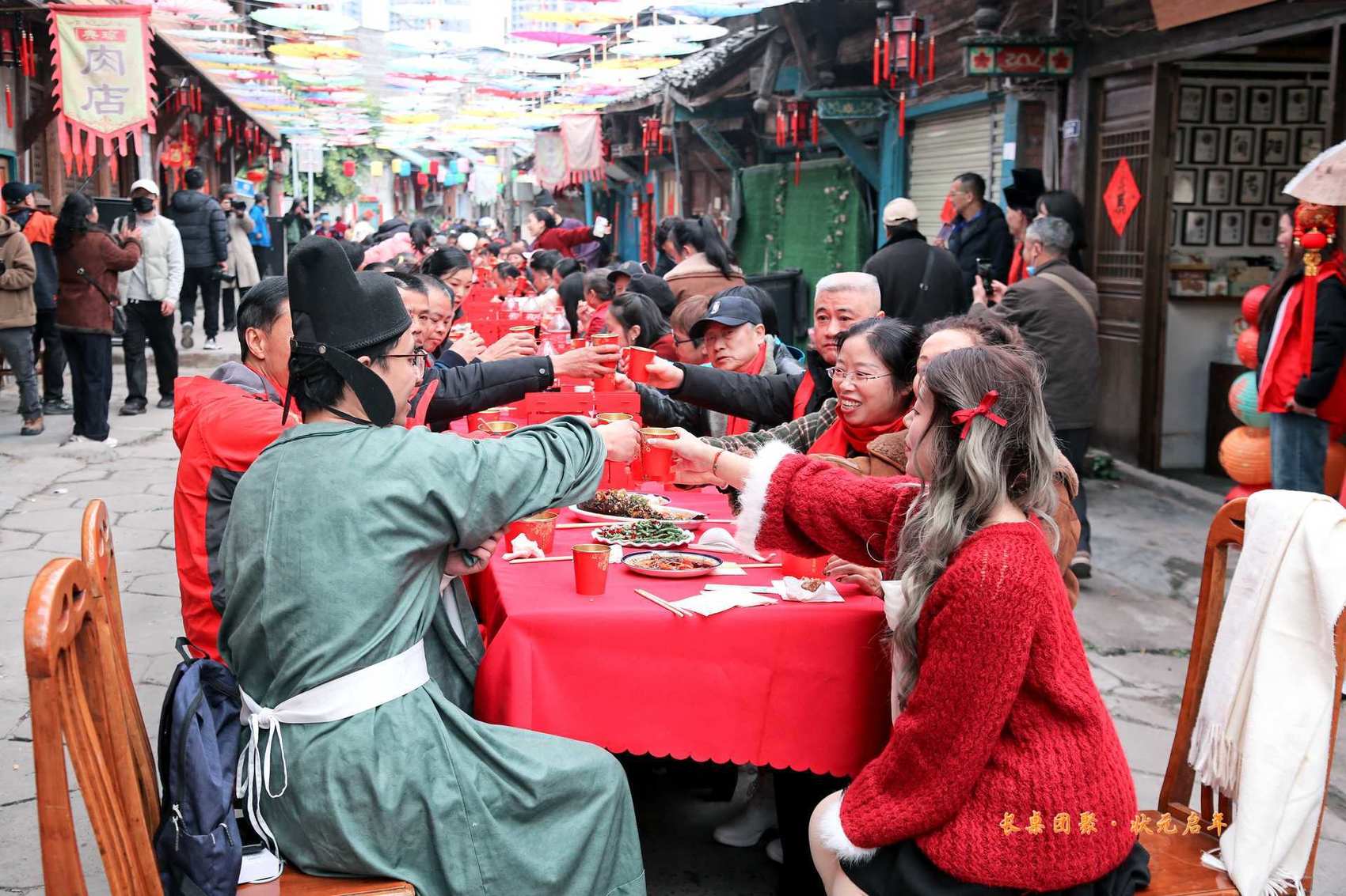 记者从简阳市文化广电体育和旅游局了解到,石桥古镇“非遗传承·年味石桥”活动之“宴春-长桌团聚·状元启年”活动将从农历正月初一持续到初三,为每日的11:40-13:00。活动地点为简阳市石桥街道大街社区中山街,活动报名费用为60元/人(不占座位的婴幼儿免费),每日限定180人,售完即止。报名入场人员可领取定制红色围巾1条+石桥古镇文化种子纪念票1张。