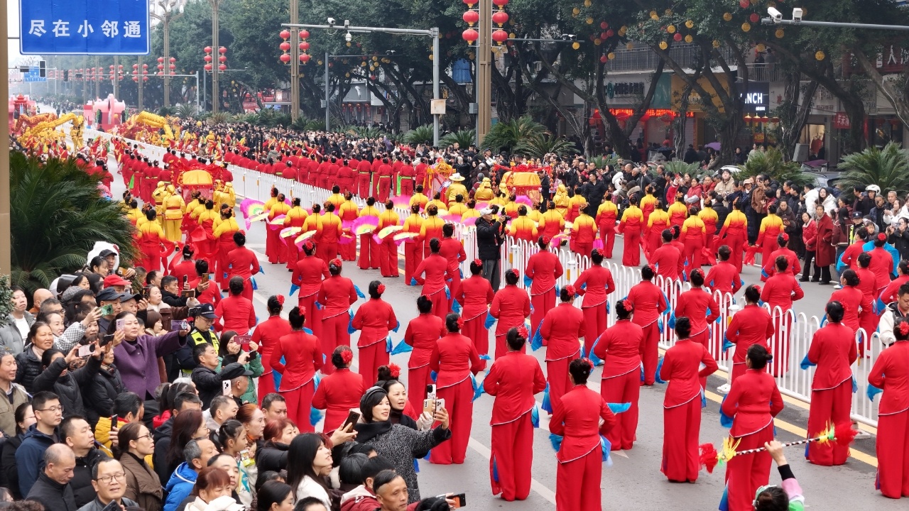 此次巡游活动,既让龙狮、车幺妹等非遗民俗传了下去,也唤醒了群众心中对传统节日的深厚情感,一公里的巡游路,让这个马年新春的邻水,饱含红灯笼、欢笑声的烟火气。跟随镜头,一起去看看。
