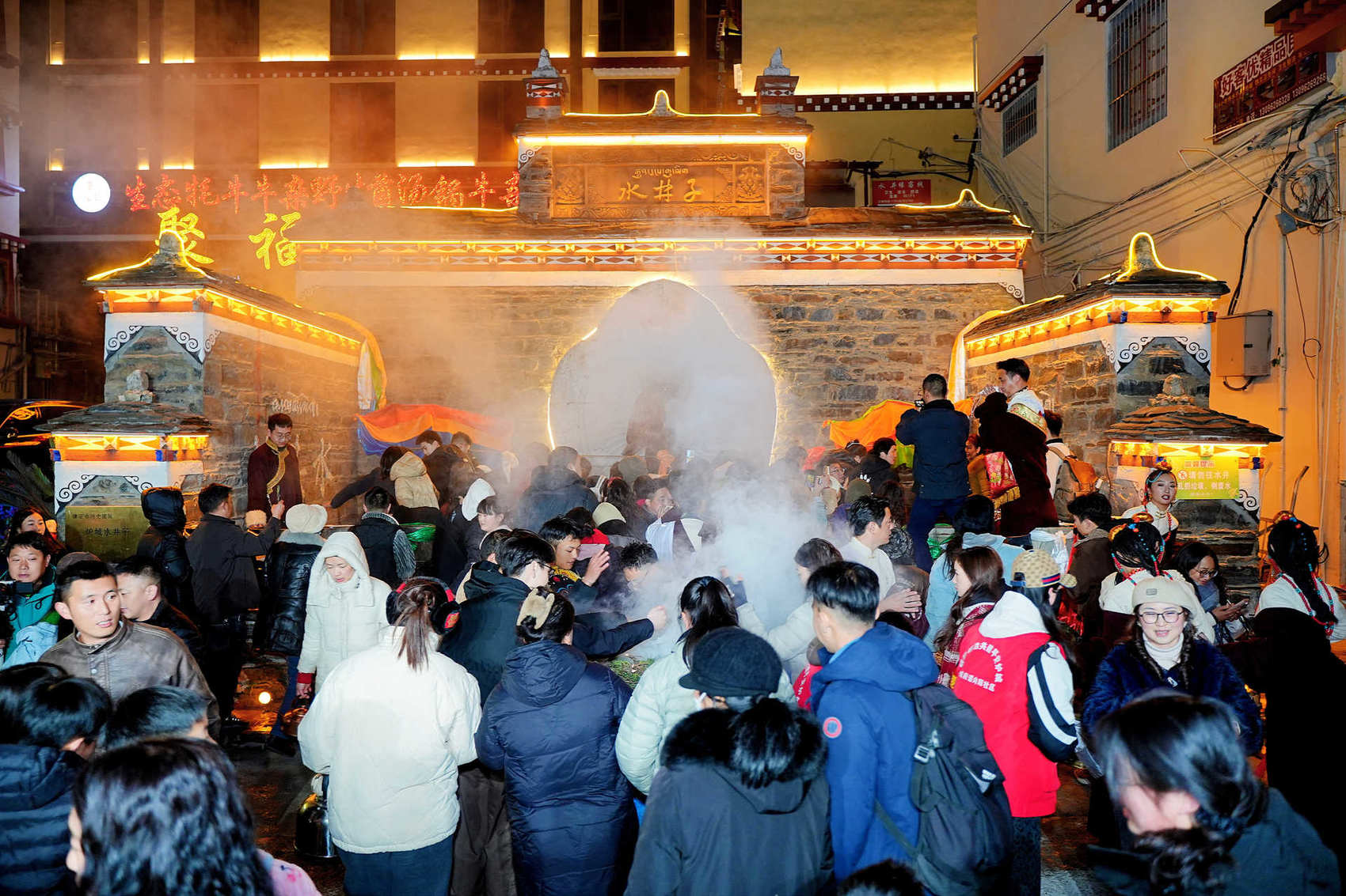 2月16日除夕夜,在甘孜州康定市,当地藏族群众延续千年传统,在跑马山下的古老泉眼“水井子”举办了一场“抢头水”的民俗活动。人们争抢新年第一桶吉祥之水,祈愿新岁安康、阖家幸福,以最传统的方式迎接新春的到来。