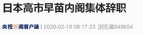 当地时间2月18日上午,日本政府召开内阁会议,高市早苗内阁集体辞职。