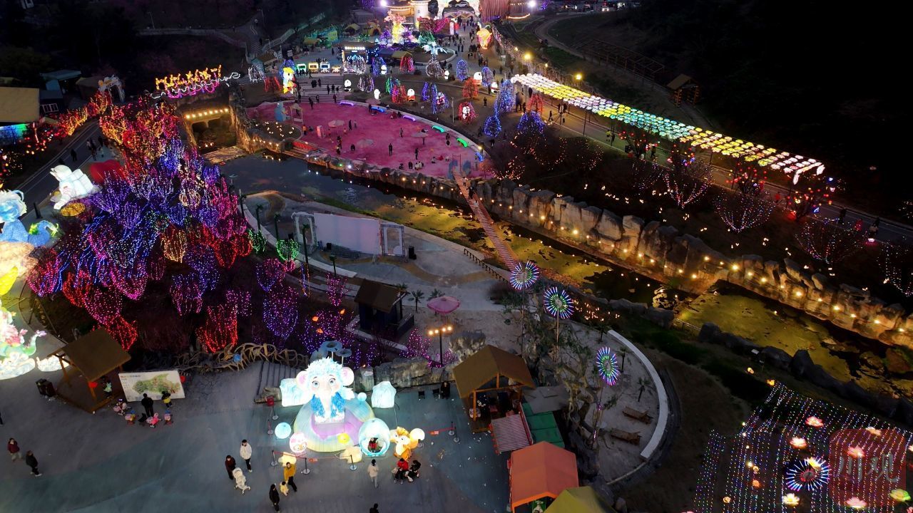 随着马年春节的来临,雅安市名山区梅花谷精灵乐园内,2026雅安精灵新春灯会亮灯迎客。