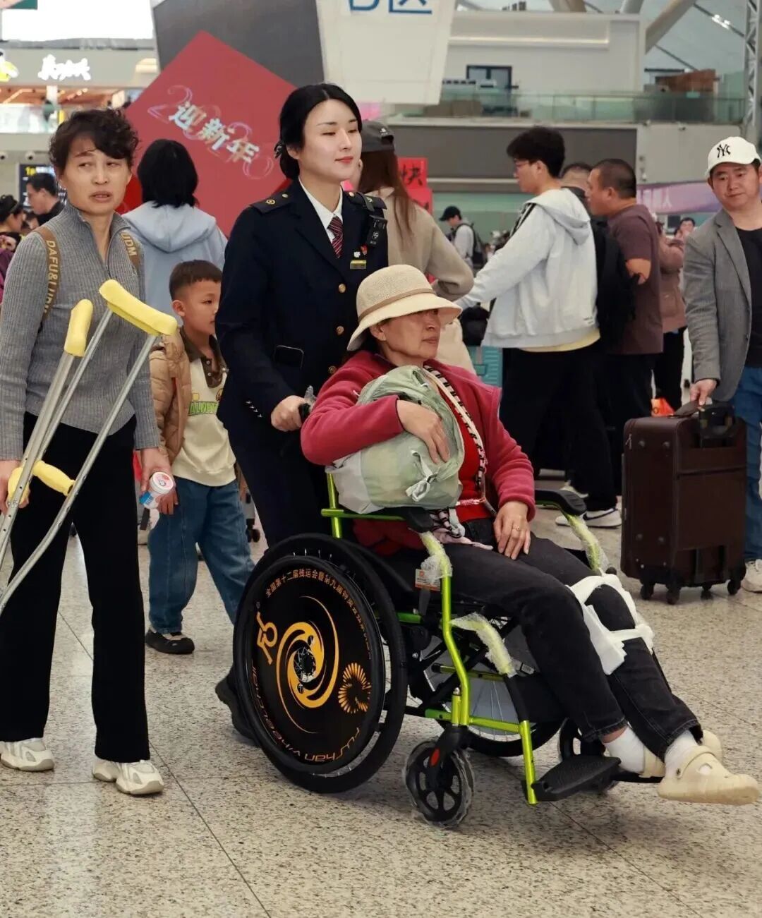 2月5日,深圳北站工作人员为重点旅客提供温暖服务。春运期间,铁路部门采取多项便民措施,让旅途保持平安、有序、温馨。赵青 摄