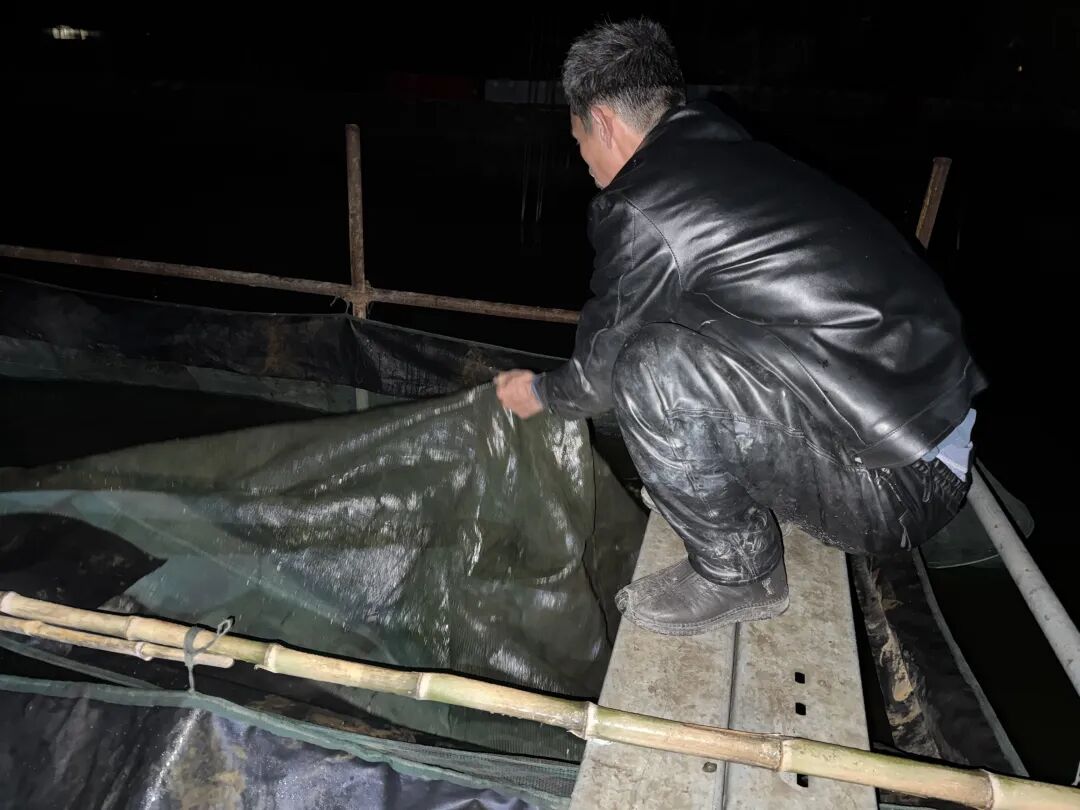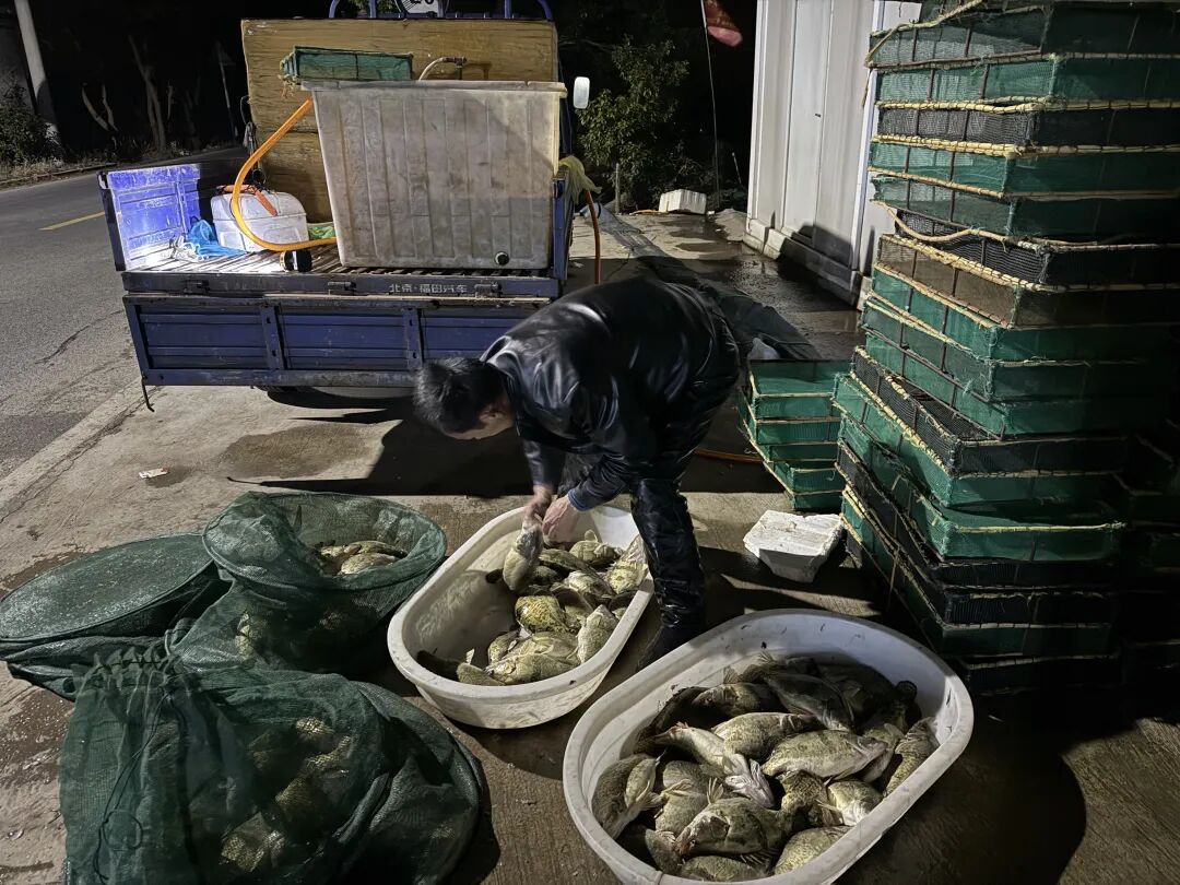 腊月二十八凌晨三点,老邢打捞起鱼塘里养殖的最后一批鳜鱼,准备运送到最近的江苏南京的水产批发市场去卖。