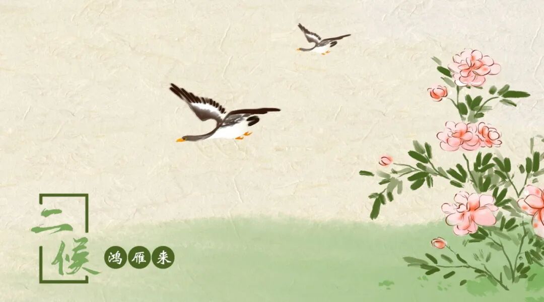 “雁南飞去,春归雁来”,雨水时节,南方的气候已然温润适宜,原本飞往南方越冬的鸿雁,感知到春的气息,便成群结队,踏上北归的旅程。