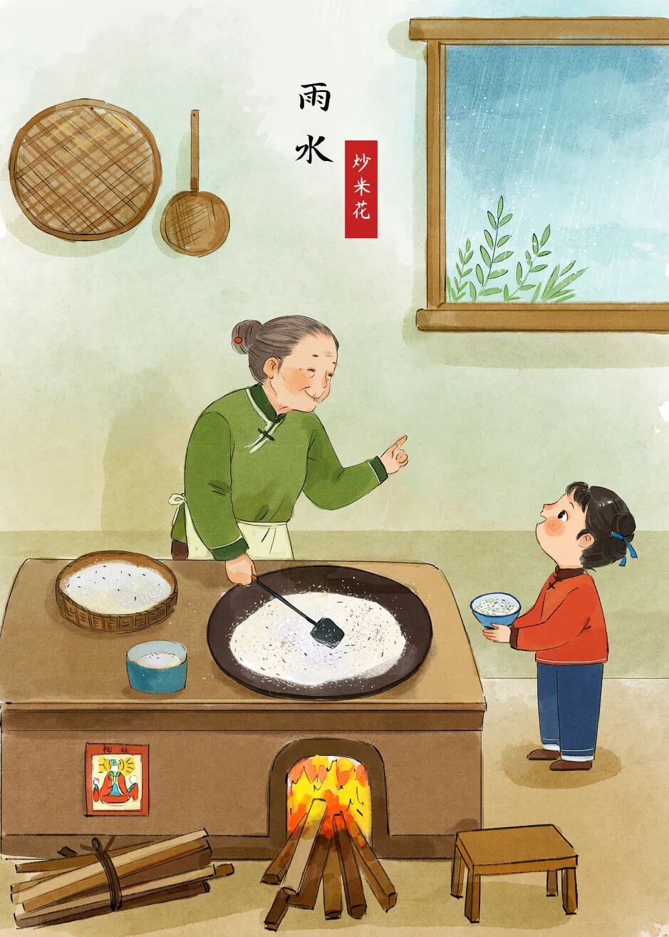 占稻色是雨水时节极具特色的民俗,核心是通过简单的仪式,祈愿来年水稻丰收。这一天,人们会取少量稻谷,放入锅中爆炒,观察稻谷的成色——如果稻谷爆炒后颜色金黄、颗粒饱满,便预示着来年水稻丰收、五谷丰登;若是成色不佳,则寓意着需要更加用心耕作。这一习俗虽简单质朴,却承载着农民们对丰收的热切期盼,也体现了人们顺应时节、敬畏自然的生活智慧。