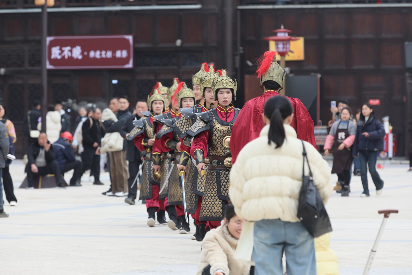 开园首日下午两点,在岳池曲艺百花园南入口广场,“开园迎宾礼”在洪亮高亢的音乐中拉开帷幕。园内唐宋风格建筑群以“宫、城、郭”为规划理念,以十字双轴、两街四巷规划布局,漫步于古园之中,目光所及皆是建筑艺术,殿宇的飞檐斗拱层层叠叠,雕梁画栋上刻着栩栩如生的花纹。沿着步道前行,园内景致随步移而变换,构成一幅古韵悠长的画卷。“建筑非常宏观,很适合拍照打卡,许多家人朋友都想来观赏。”游客江柯欣说。