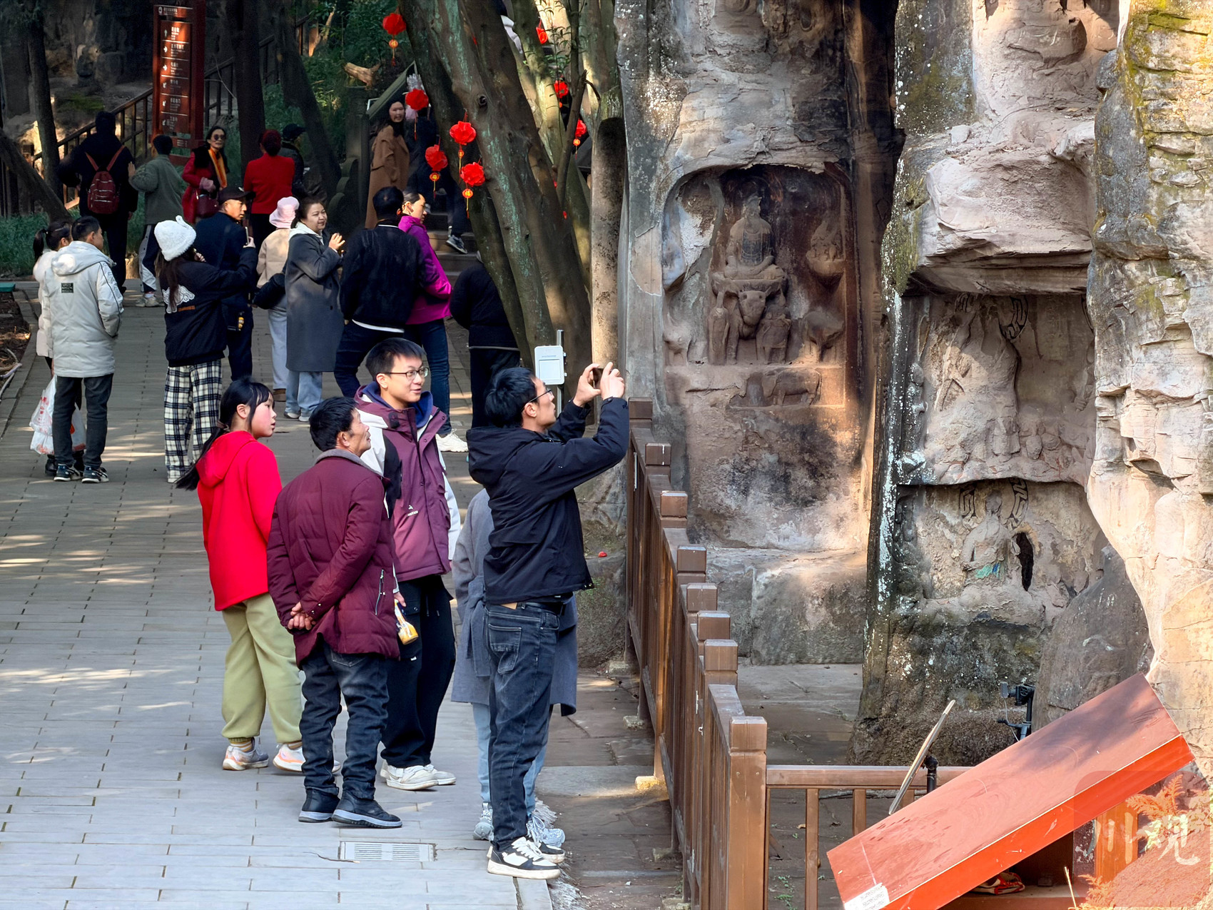 游客在安岳圆觉洞景区游玩。