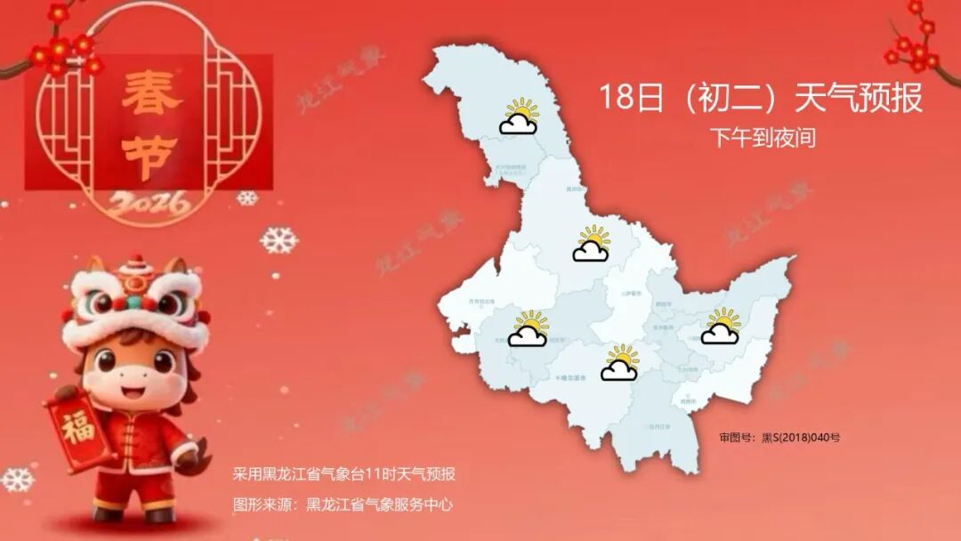 黑龙江省气象台2026年2月18日11时发布18日下午至23日夜间全省天气预报: