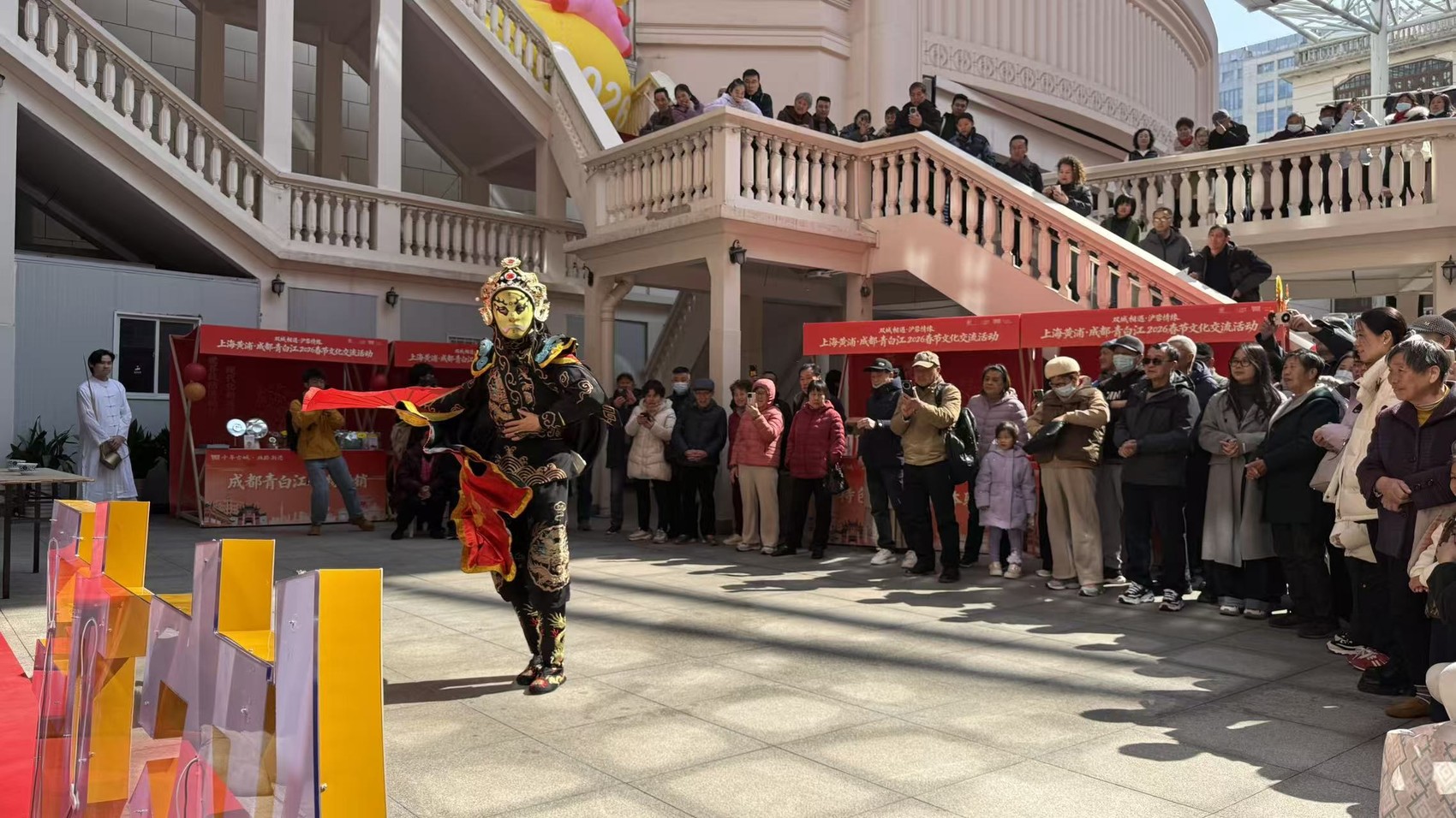 2月18日,“上海黄浦·成都青白江2026春节文化交流活动”在两地同步举行,沪蓉两地市民游客互赏异地文化、共品特色好物,开启一场跨越千里的文化相逢。