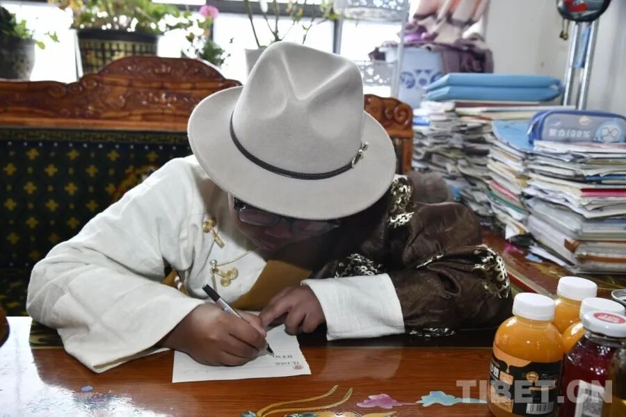 图为噶吗多吉为王成诚同学写信摄影:赵振宇