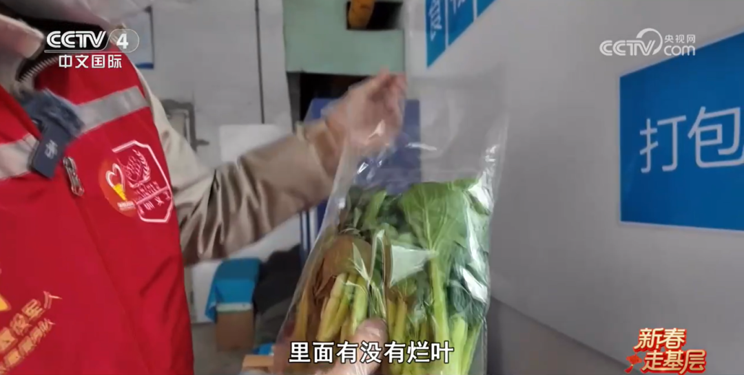 菜要看色泽、看有没有破损的、里面有没有烂叶。这些都没问题,他们捐的这些菜基本上都挺新鲜的。