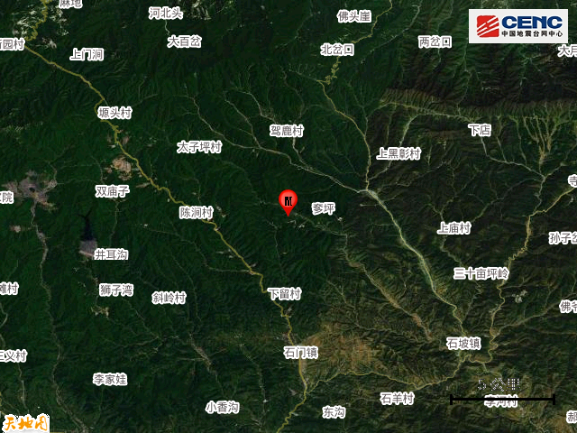 震中地形:震中5公里范围内平均海拔约1338米。