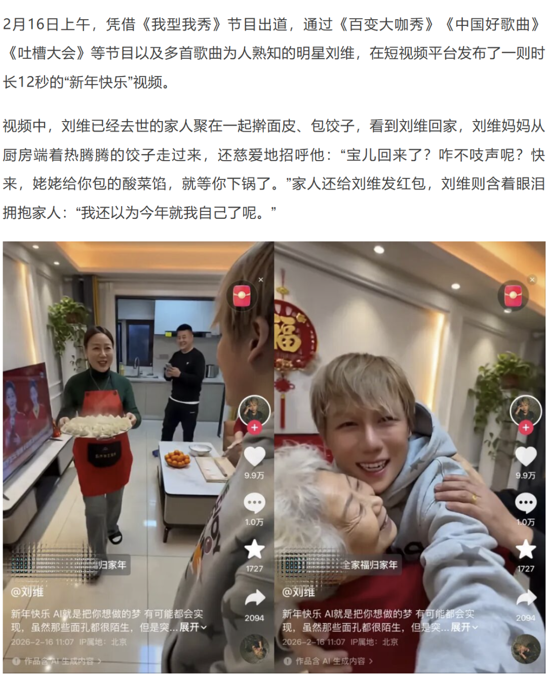 许多人安慰刘维的同时,也在安慰这些评论区的网友:“逝去的亲人在天堂陪着你,不要觉得孤单,要一直快乐。”“我们都是妈妈身上掉下的肉,我们活着,妈妈就活着。”“你会成为丈夫、父亲、爷爷、姥爷,向前看,别回头,加油!”