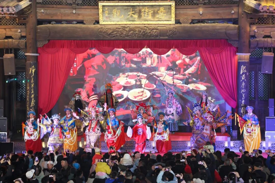 核心亮点“非遗马灯戏”闪耀登场,配合龙狮共舞、财神巡游送福及非遗工坊体验,生动呈现特色民俗。