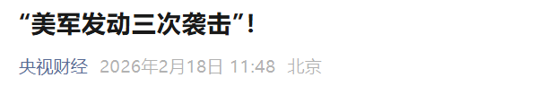 当地时间17日,美国南方司令部称,美军“南方之矛”联合特遣部队2月16日晚在东太平洋海域及加勒比海域对三艘“贩毒船”实施了三次致命打击。