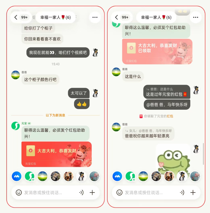 元宝持续迭代更新,21天内已迭代更新159项功能,今天元宝还公布了更多更新计划:正月初五,用户在元宝派内聊天,元宝会随机掉落红包;同时,在切换不同元宝派时,一起听不会掉线;正月十五元宵节,用户还可以在派里一起看湖南卫视元宵晚会直播。