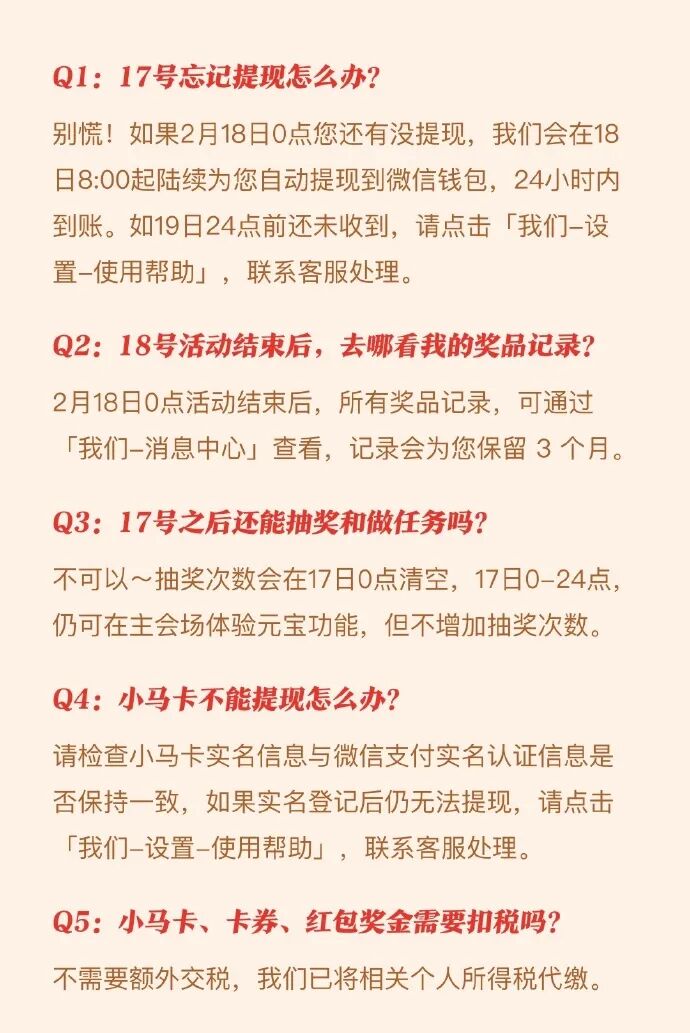 ——别慌!不用担心!如果2月18日0点您还有没提现,我们会在18日8:00起陆续为您自动提现到微信钱包,24小时内到账。