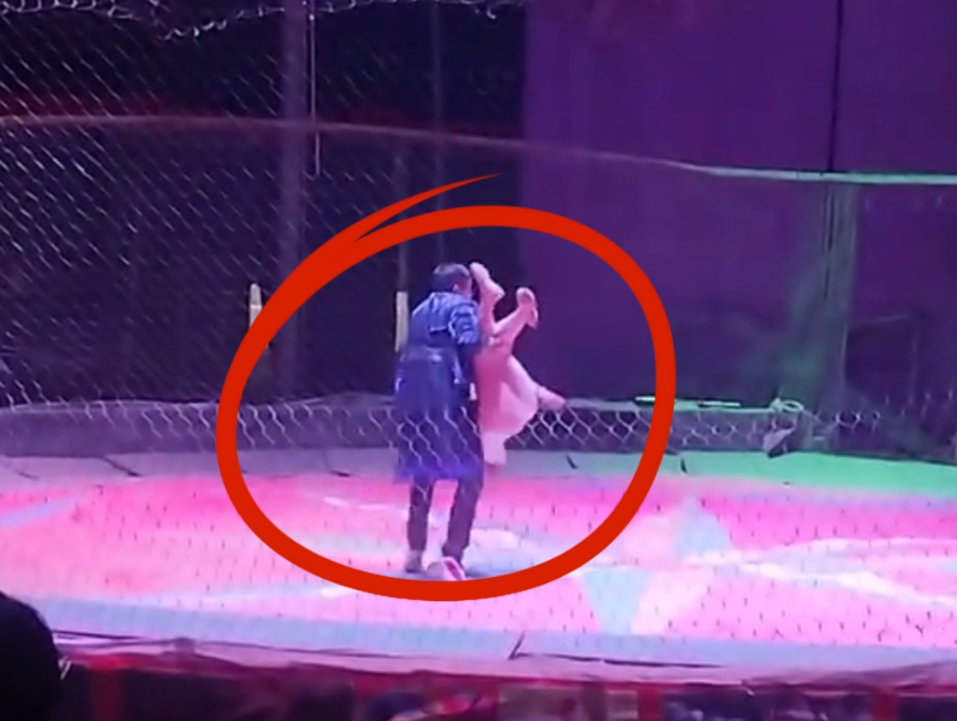 2月17日,河南南阳社旗县一马戏团在杂技表演过程中发生意外,一名女演员从高空摔落。