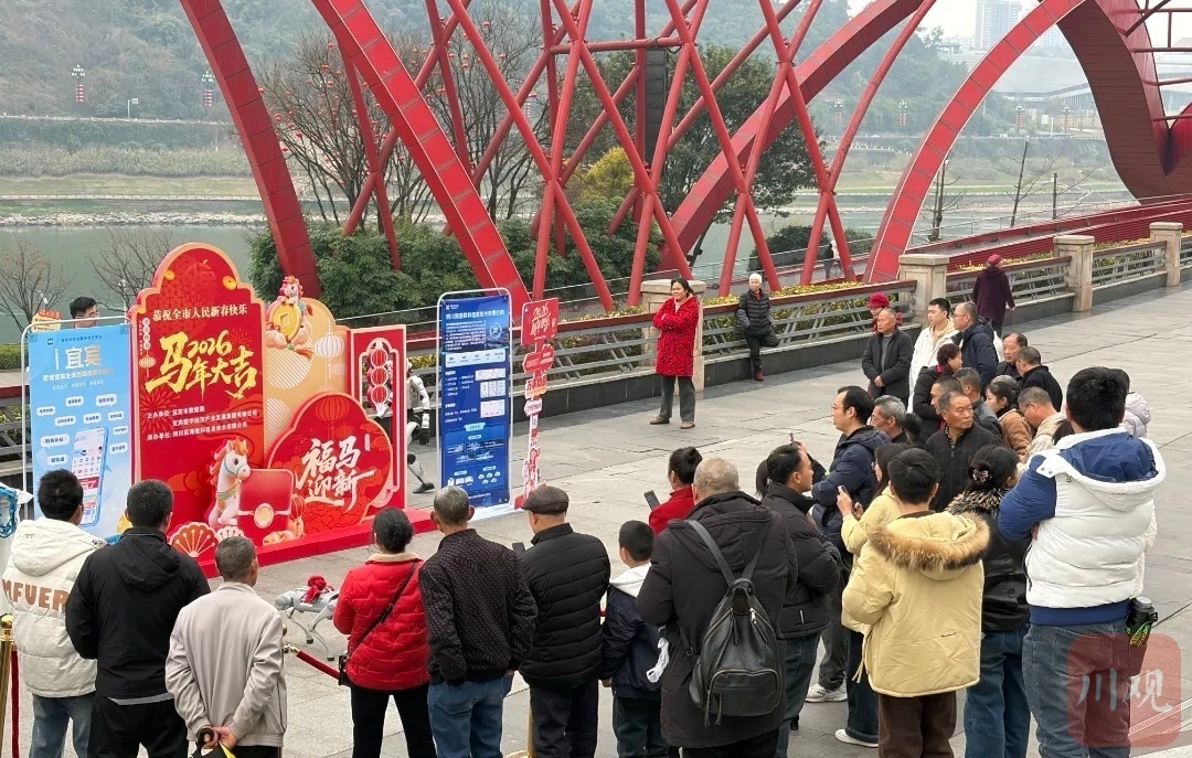 2月18日,大年初二,宜宾长江音悦街人头攒动、热闹非凡。传统非遗与现代科技在这里“同框”,为市民游客呈现出一幅既有烟火气、又具未来感的春节画卷。