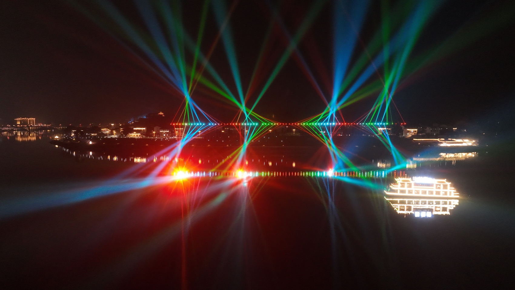 广安武胜县沿口古镇,“千年沿口·梦回嘉陵”光影秀正在上演 (贺小芹 摄)