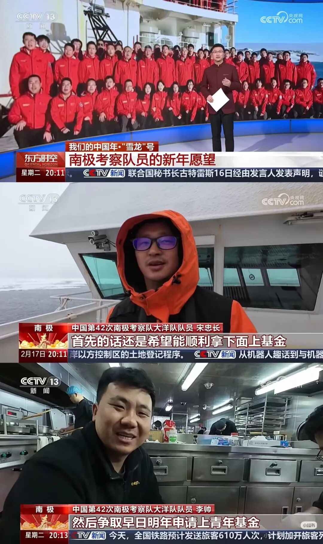 2月17日,央视记者采访了雪龙号上的南极科考人员,询问他们的新年愿望有哪些。