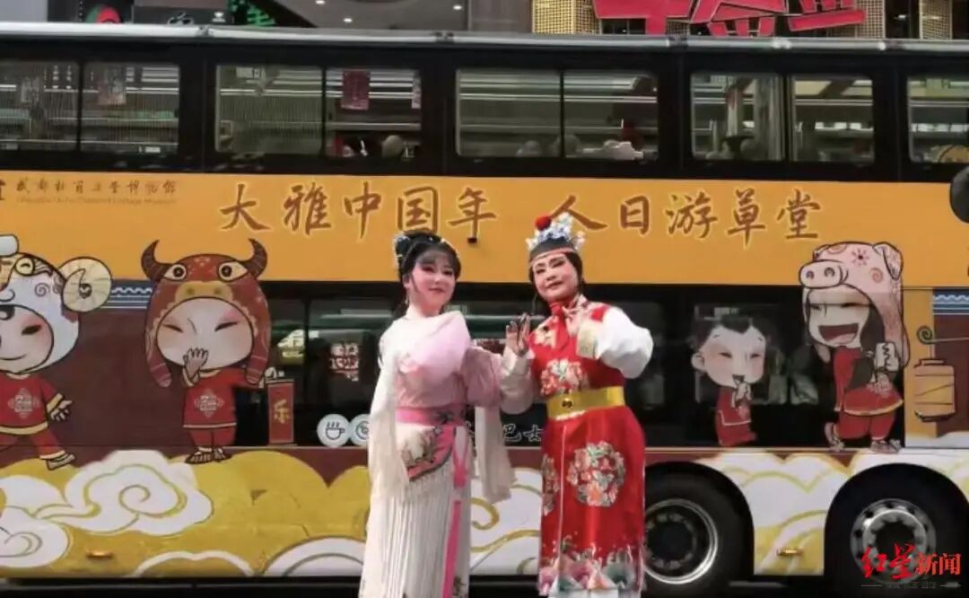 2月15日,成都公交蓉火火茶歇巴士“越剧雅韵 巴士传情”新春非遗之旅已启幕,每日14:00从IFS爬墙熊猫地标对面发车,全程约70分钟,串联宽窄巷子、人民公园、天府广场等蓉城核心地标,将双层巴士打造成新春移动非遗剧场。