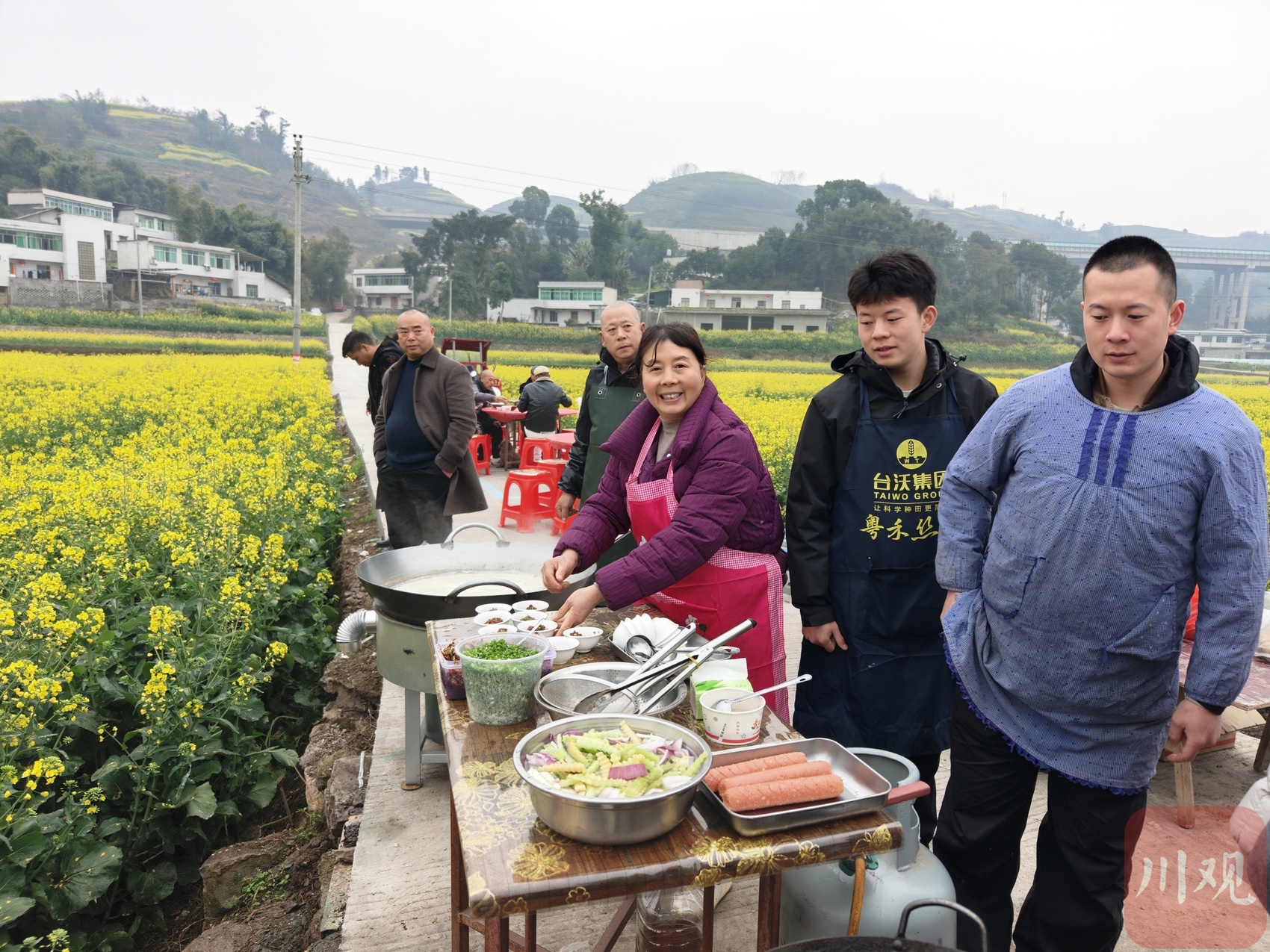 七公里花海,游人走走停停。田埂上,炉火一直烧着,锅气一直冒着。人人都忙着手上的活,让春日更暖,也让寻常日子充满生机。