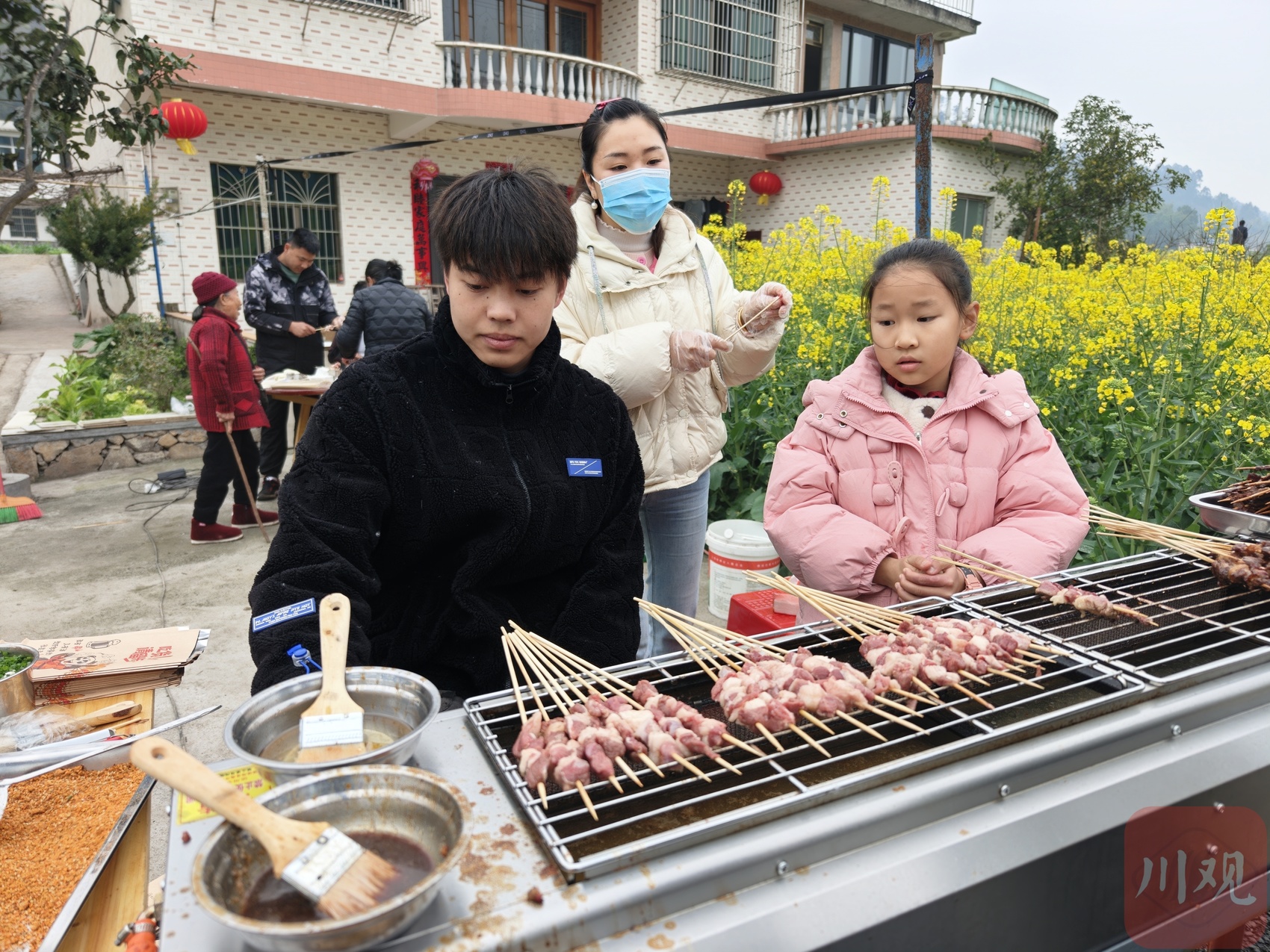 “热闹的场景让我们一晚上就下定决心,这个油菜花季我们要全家‘创业’,全家都很支持。“肖大姐忙得喜笑颜开,老人帮着切菜、串肉,孩子们在烧烤台前忙碌,“我们的食材都很新鲜,大家看着我们从串到烤,十分放心,这两天根本忙不赢,收入十分不错。”