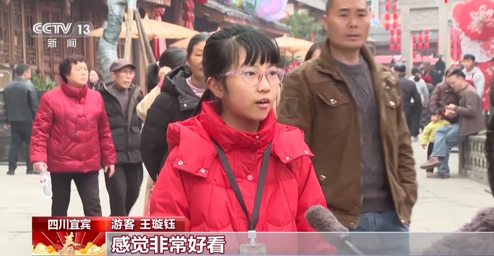 游客 孙艳:非常开心,现场张灯结彩,年味十足,非常漂亮。
