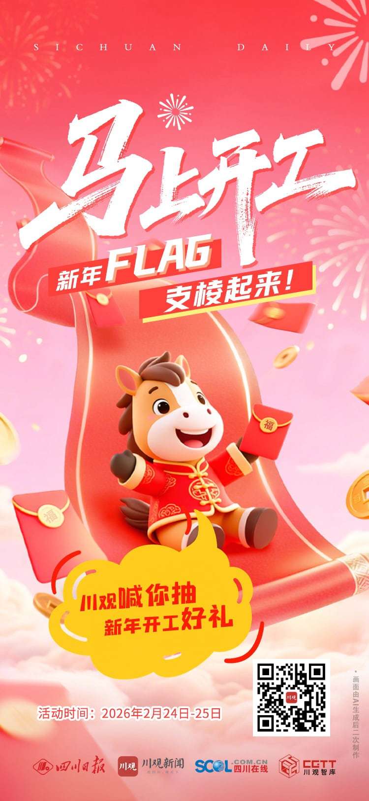 新岁启幕,万事可期。你的马年新年心愿是什么?是工作业绩步步高、职场进阶不停步,是钱包鼓鼓万事顺、生活甜甜蜜蜜,还是家人平安常相伴、奔赴所有美好?无论大小目标,大胆写下来!把新年FLAG立在川观,让文字成为前行的动力,让期许照亮马年的奋斗之路。
