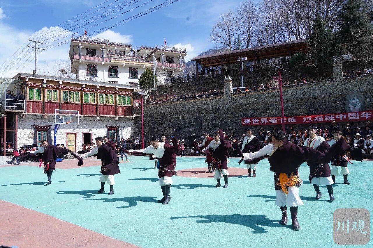 基卡依村坐落于中路藏寨核心区域,这里碉楼林立、藏居错落,嘉绒藏族文化底蕴深厚。2025年10月,基卡依村成功入选联合国世界旅游组织“最佳旅游乡村”,凭借独特的自然生态与民俗文化,成为甘孜州走向世界的一张靓丽文旅名片。活动现场,歌声悠扬、舞步飞扬。本次活动以“嘉绒年味浓·文化暖乡村”为主题,分为非遗传承与新时代歌舞两大篇章。庄重的嘉绒成人礼仪式、绚丽的非遗服饰活态展演、原生态的弦子、锅庄与山歌轮番上演,充分展现了嘉绒藏族古老文化的独特魅力,也让现场观众沉浸式体验非遗文化的活态传承。悠扬的歌声、欢快的舞蹈,展现出新时代藏寨群众安居乐业、昂扬向上的精神风貌,整个村寨洋溢着团圆、喜庆、祥和的节日氛围。
