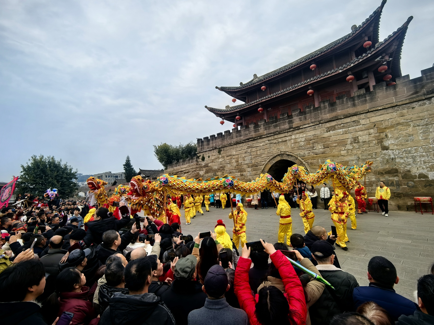 潼川古城好戏连台,舞龙舞狮巡游热闹非凡。