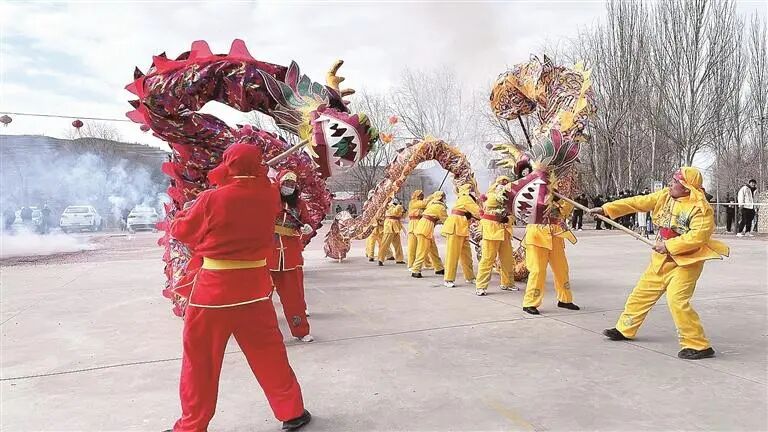 大年初二,田堡村村民闹社火舞长龙。本报记者 闫磊摄/光明图片