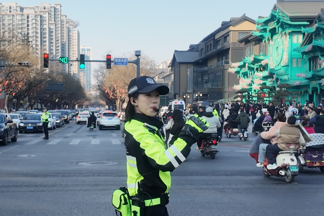 在熙熙攘攘的人群与川流不息的车流中,一抹鲜亮的“荧光绿”格外引人注目——她们,就是邯郸交巡警支队渚河大队女子中队的队员们。这支以“00后”为中坚力量的年轻警队,在万家团圆的春节假期,主动放弃与家人团聚的时光,坚守在古城最繁华的路口,用坚守诠释忠诚,用担当守护平安,成为新春邯郸道历史文化街区上一道温暖而坚定的风景。