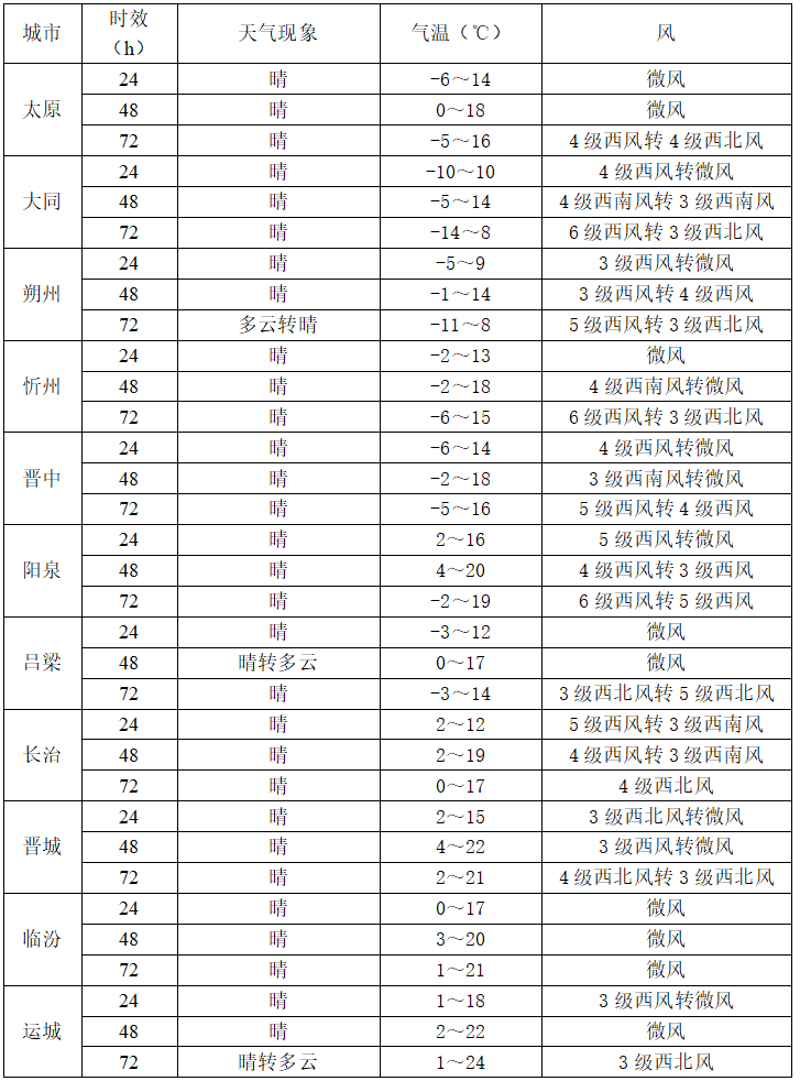 夜间气温偏低,北部及山区-9~-3℃,其他地区-3~4℃,早晚依旧寒冷