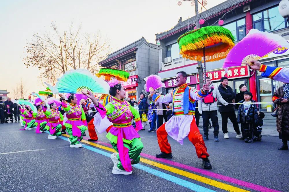与此同时,赵州桥景区内,背灯挎鼓、赵州扇鼓等非遗表演精彩上演,众多游客驻足桥上,欣赏这座千年古桥的雄姿,感受古人的智慧与匠心,沉浸式体验古韵新春的独特魅力。