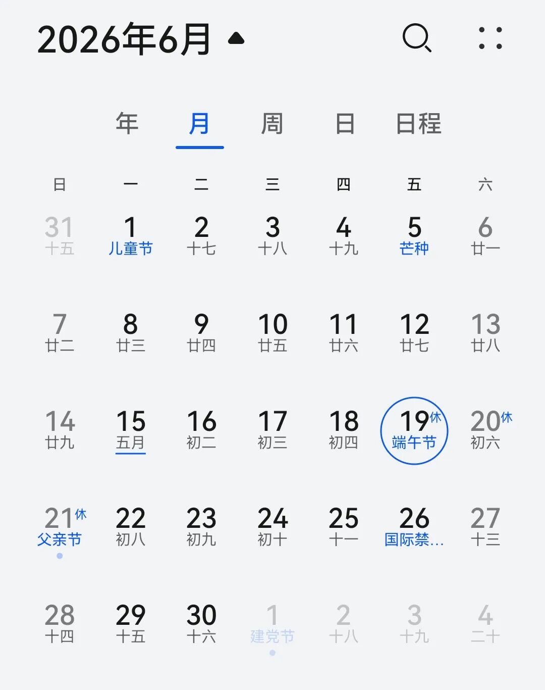 端午节:6月19日(周五)至21日(周日)放假,共3天。